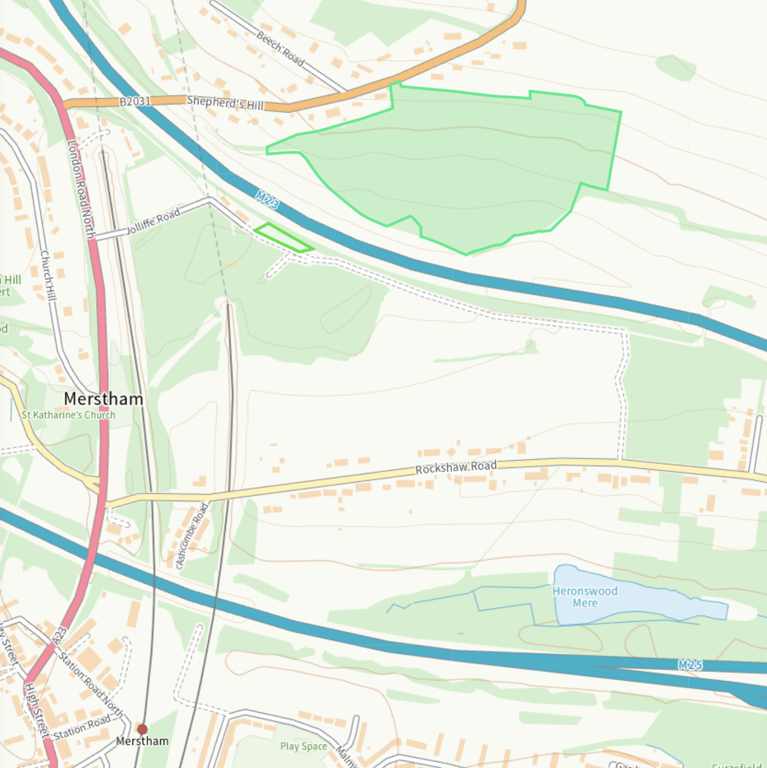 The land is located in a semi-rural location on the North Downs, northeast of Redhill and north of the M23. Merstham village and station are approximately 1 mile (20 min) walk from the access point on the B2031 Shepherds Hill. This is in a high value residential area characterised by detached homes on larger plots, overlooking open countryside and the M23/M25 junction further to the south, making this a strategically accessible location.