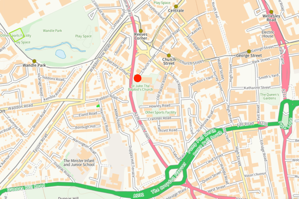 The unit is located in a highly prominent location at the end of Church Street, less than 500m from Croydon’s commercial centre, adjacent to the Minster, with return frontage to the main A236 Roman Way (bypass). The location is well served by local buses at Reeves Corner and is the Church Street tram (approx. 150m).